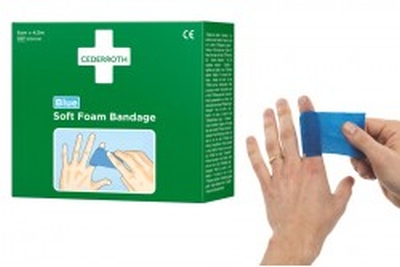 Samoprzylepny bezklejowy plaster Cederroth Soft Foam Bandage Blue 4,5 m 51011010 to jednocześnie plaster i bandaż.