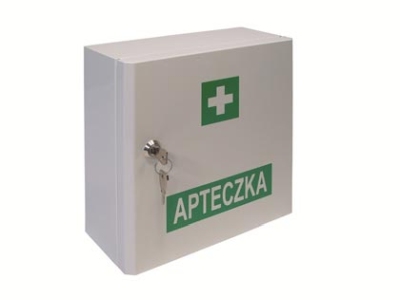 Dozownik zawiera również myjki do ran oraz wiele plastrów w różnych rozmiarach.